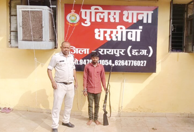 धरसींवा : थाना धरसींवा क्षेत्रांतर्गत पुलिस पेट्रोलिंग के दौरान सूचना प्राप्त होने पर एक व्यक्ति जिसका नाम अजय पारधी द्वारा ग्राम सगुनी कोल्हान नाला मेन रोड़ के पास हाथ में 52 इंच का भरमार बंदूक लेकर हवा में फायरिंग कर आते जाते लोगों को डरा धमका रहा था।