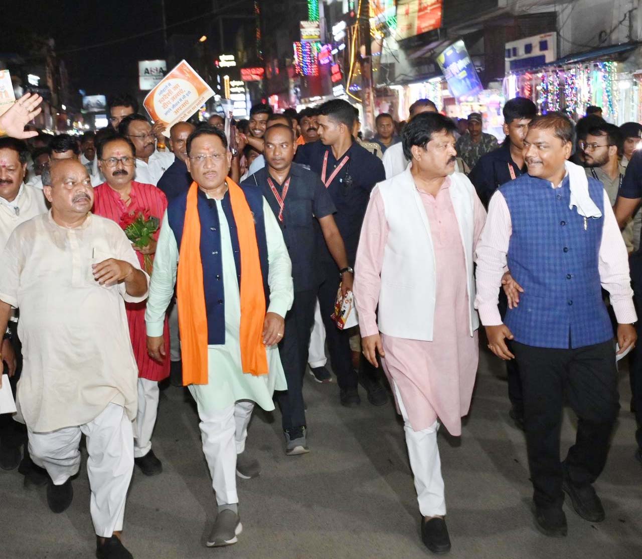 मुख्यमंत्री श्री साय ने महात्मा गांधी मार्ग स्थित विभिन्न दुकानों में भ्रमण कर दुकानदारों और ग्राहकों से आत्मीय बातचीत की। बाजार में पैदल भ्रमण के दौरान आमजन ने मुख्यमंत्री पर पुष्पवर्षा कर स्वागत और अभिनंदन किया।