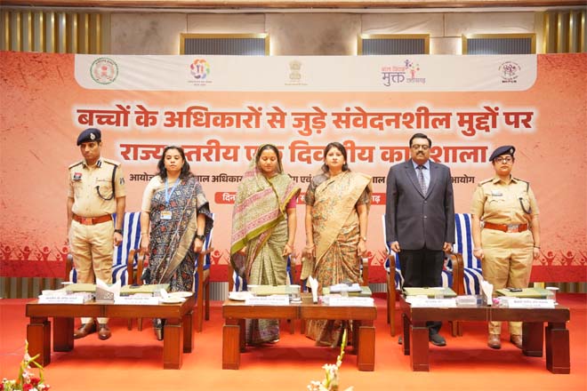 रायपुर : राज्य बाल अधिकार संरक्षण आयोग द्वारा बच्चों के अधिकारों से जुड़े संवेदनशील मुद्दों पर राज्यस्तरीय एक दिवसीय कार्यशाला का आयोजन किया गया। महिला एवं बाल विकास मंत्री लक्ष्मी रजवाड़े ने कार्यशाला का उद्घाटन किया। इस एक दिवसीय कार्यशाला को दो सत्रों में आयोजित किया गया, जिसमें प्रथम सत्र राष्ट्रीय बाल अधिकार संरक्षण आयोग से आईं शाइस्ता शाह ने लिया व द्वितीय सत्र कमिश्नरेट रायपुर के संजीव शुक्ला ने लिया, जिसमें सभी जिलों से जिला शिक्षा अधिकारी, जिला बाल कल्याण अधिकारी, बाल गृह अधीक्षक, SJPU (Special Juvenile Police Unit) शामिल हुए।
