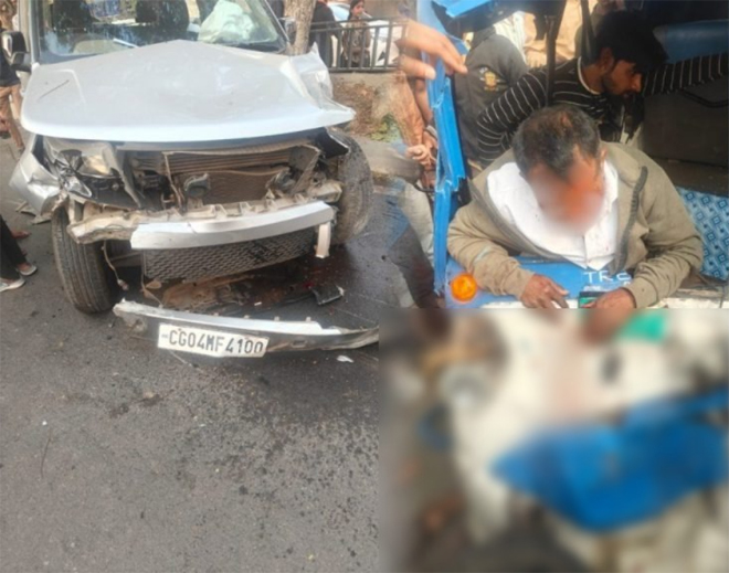 रायपुर : राजधानी रायपुर के वीआईपी रोड पर नए साल के दिन बड़ा हादसा हो गया। श्रीराम मंदिर के पास तेज रफ्तार कार ने सामने से आ रहे ई-रिक्शा को टक्कर मार दी, इसके बाद अनियंत्रित होकर एक स्विफ्ट कार से जा भिड़ी। हादसे में ई-रिक्शा चालक गंभीर रूप से घायल हो गया, जिसे तुरंत अस्पताल भेजा गया।