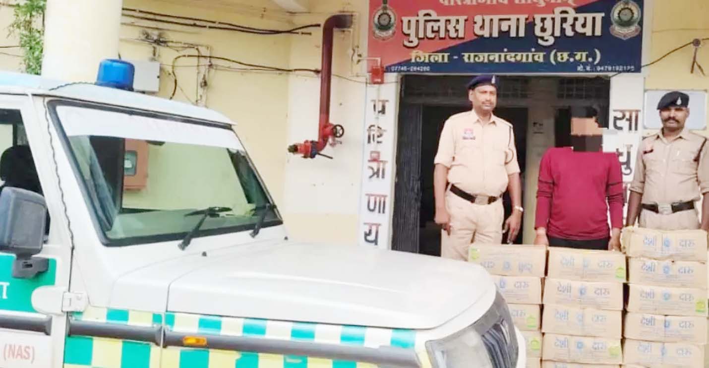 महतारी एक्सप्रेस वाहन से शराब की तस्करी, महाराष्ट्र निर्मित डेढ़ दर्जन शराब की पेटी के साथ आरोपी गिरफ्तार