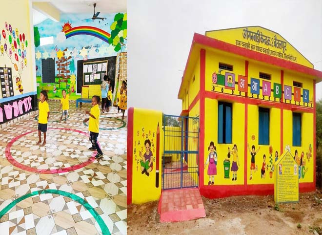 महात्मा गांधी राष्ट्रीय ग्रामीण रोजगार गारंटी योजना (मनरेगा) और महिला एवं बाल विकास विभाग के अभिशरण से निर्मित नवीन आंगनबाड़ी भवनों ने Building as Learning Aid (BALA) की अवधारणा को जमीनी स्तर पर साकार कर दिया है।11.69 लाख रुपए की लागत से निर्मित प्रत्येक भवन में दीवारों, फर्श, सीढ़ियों, दरवाजों और खुली जगहों को शिक्षण माध्यम के रूप में विकसित किया गया है। हिंदी-अंग्रेजी वर्णमाला, अंक, आकृतियाँ, दिशाएँ, जीव-जंतु, स्थानीय परिवेश और सामान्य ज्ञान से जुड़ी चित्रकारी बच्चों को खेल-खेल में सीखने का अवसर प्रदान कर रही है।अब आंगनबाड़ी भवन स्वयं एक शिक्षक बन चुके हैं जहाँ हर दीवार एक पाठशाला है।