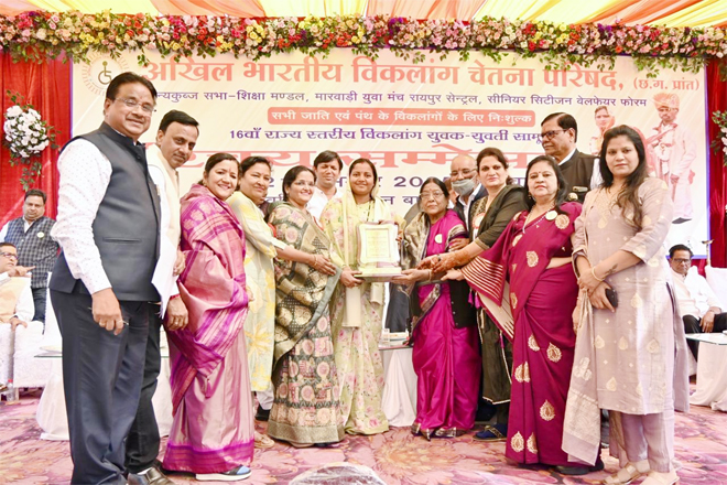 रायपुर : महिला एवं बाल विकास तथा समाज कल्याण मंत्री श्रीमती लक्ष्मी राजवाड़े ने कहा है कि दिव्यांगजन समाज की मुख्यधारा का अभिन्न अंग हैं और उनके प्रति संवेदनशील सोच व सम्मानजनक भाषा का उपयोग अत्यंत आवश्यक है। वे अखिल भारतीय विकलांग चेतना परिषद (छत्तीसगढ़ प्रांत) के तत्वावधान में आशीर्वाद भवन, बैरन बाजार, रायपुर में आयोजित 16वें राज्य स्तरीय विवाह योग्य युवक–युवती परिचय सम्मेलन को संबोधित कर रही थीं।
