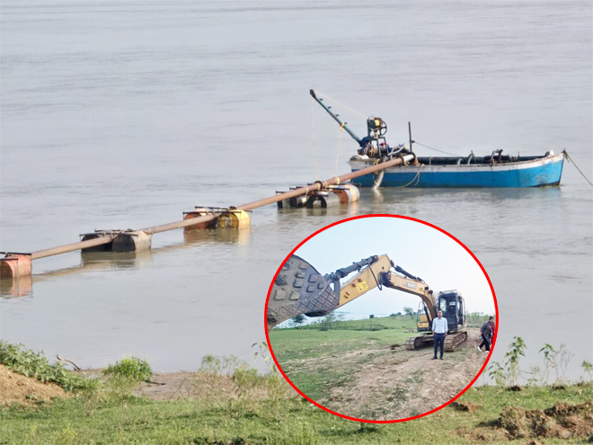अवैध रेत खनन पर त्वरित कार्रवाई – ग्राम गुदगुदा में 2 बोट एवं 2 चैन माउंटेन जब्त