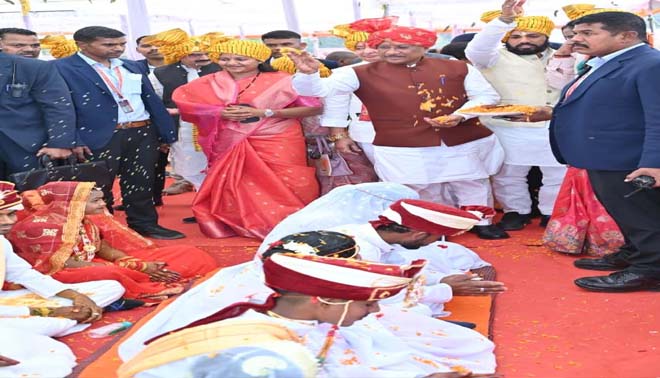 मुख्यमंत्री श्री विष्णु देव साय, महिला एवं बाल विकास मंत्री श्रीमती लक्ष्मी राजवाड़े तथा कौशल विकास मंत्री गुरु खुशवंत साहेब ने सभी नवदंपत्तियों के पास जाकर उन्हें आशीर्वाद प्रदान किया और उनके सुखमय दांपत्य जीवन की कामना की। मुख्यमंत्री ने कहा कि मुख्यमंत्री कन्या विवाह योजना का उद्देश्य सभी वर्गों और धर्मों के परिवारों को सम्मानपूर्वक विवाह का अवसर प्रदान करना है, जिससे सामाजिक समरसता और भाईचारा और अधिक सुदृढ़ हो।