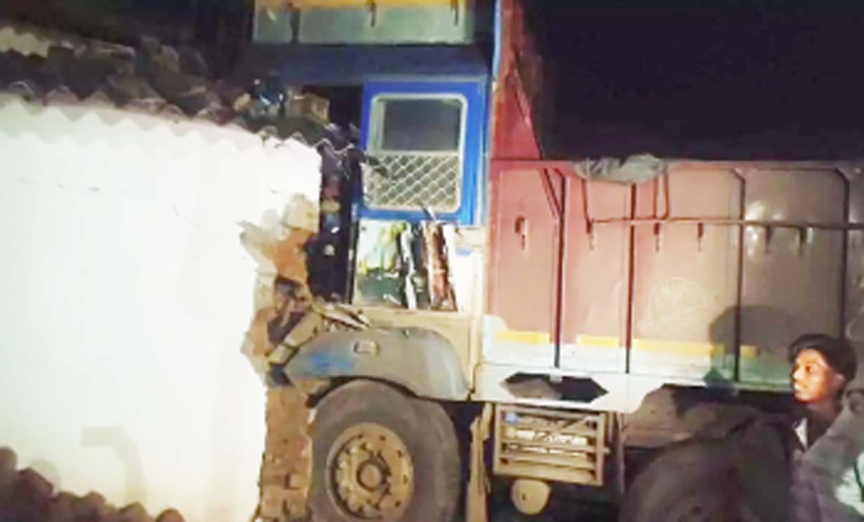 रफ़्तार का कहर : आयरन ओर से भरा ट्रक घर में घुसा, बाल-बाल बचे ग्रामीण
