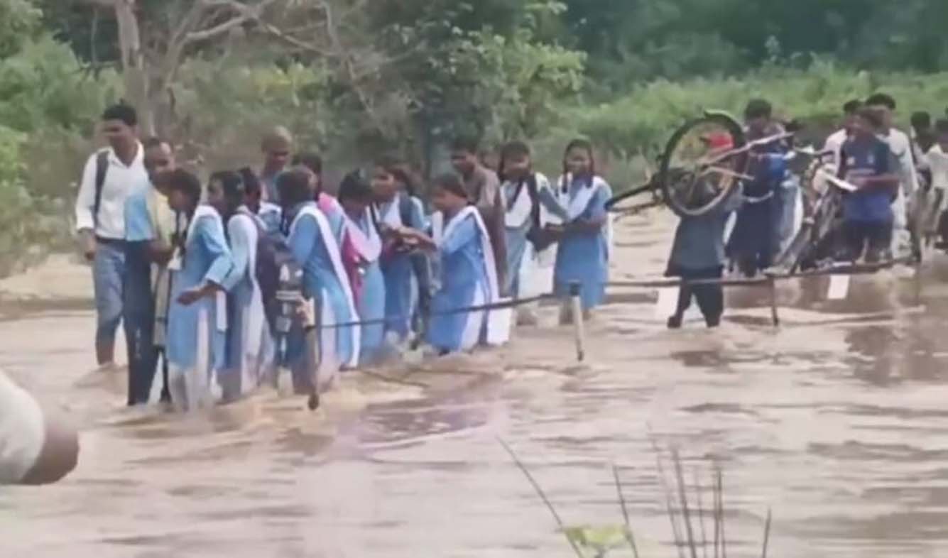“जान हथेली पर रख कर पढ़ाई! गरियाबंद में पुल निर्माण अटका, नदी पार कर स्कूल जाने को मजबूर मासूम बच्चे”