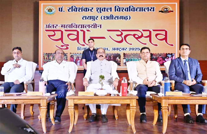 पंडित रविशंकर शुक्ल विश्वविद्यालय के कुलपति प्रो. सच्चिदानंद शुक्ला ने अपने संबोधन में कहा कि विश्वविद्यालय अपने कैंपस और संबद्ध कॉलेजों में उत्कृष्ट शैक्षणिक वातावरण निर्मित करने के लिए प्रतिबद्ध है। इस साल अगस्त माह में नैक (NAAC) के मूल्यांकन में विश्वविद्यालय को ए-प्लस ग्रेड मिला है जो कि पूरे राज्य के लिए गर्व का विषय है। विद्यार्थियों के सर्वांगीण विकास के लिए अध्ययन के साथ-साथ अन्य गतिविधियों पर भी जोर दिया जा रहा है। नई राष्ट्रीय शिक्षा नीति-2020 के अनुरूप वर्ष 2023-24 से विश्वविद्यालय में संचालित सभी पाठ्यक्रमों में इंटर्नशिप अनिवार्य किया गया है। पिछले ढाई वर्षों में यहां 16 नए रोजगारमूलक पाठ्यक्रम प्रारंभ किए गए हैं। नवाचार और अनुसंधान को बढ़ावा देने राज्य शासन के सहयोग से इनोवेशन एंड इन्क्युबेशन सेंटर भी स्थापित किया गया है। विगत ढाई वर्षों में विश्वविद्यालय के 32 प्राध्यापकों को विभिन्न एजेंसीज की शोध परियोजनाएं प्राप्त हुई हैं। प्रो. शुक्ला ने बताया कि अंतर-महाविद्यालयीन युवा उत्सव के विजेता प्रतिभागी एसोसिएशन ऑफ इंडियन यूनिवर्सिटिज द्वारा आयोजित अखिल भारतीय प्रतियोगिता में हिस्सेदारी करेंगे।