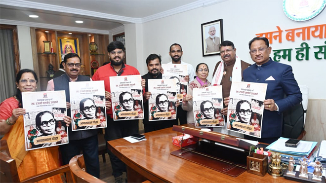 रायपुर : मुख्यमंत्री श्री विष्णु देव साय ने मुख्यमंत्री निवास कार्यालय में रायपुर की प्रथम महिला विधायक स्वर्गीय श्रीमती रजनी दत्तात्रेय उपासने के जीवन पर आधारित डॉक्यूमेंट्री “अनटोल्ड स्टोरी ऑफ स्व. रजनी दत्तात्रेय उपासने” का विमोचन किया।
